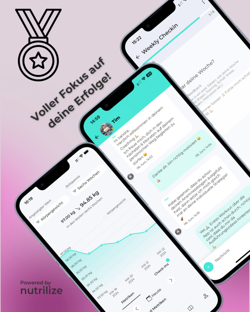 Ich helfe dir, deine persönlichen Fitness-, Ernährungs-, Körper- und Gesundheitsziele zu erreichen. Bei mir erhältst du eine maßgeschneiderte und professionelle Unterstützung. Lass uns gemeinsam deine Reise starten!